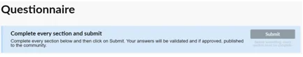 Once you have answered all mandatory questions, your questionnaire will be ready to be submit. The validations team will check your answers and advise of any clarifications needed. Please note it may take up to five working days for your questionnaire to be validated.